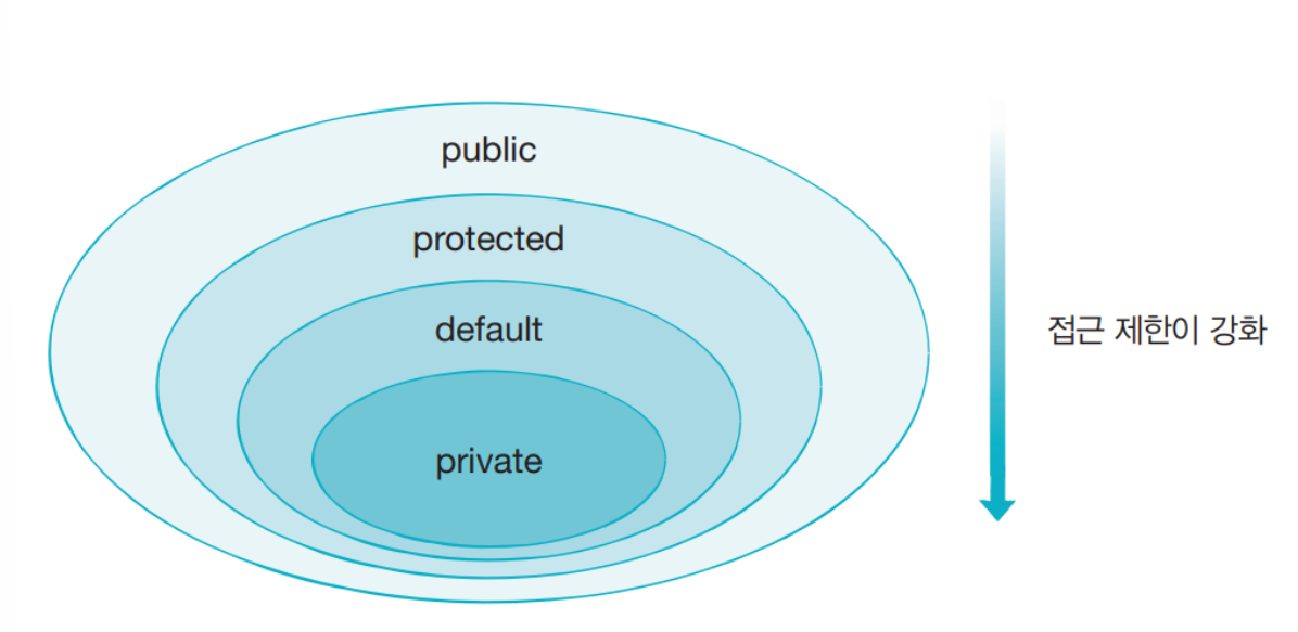 위에서 작성한 순서대로 접근 제한이 강화된다. 아무것도 쓰지 않았을 경우에는 default로 생성된다.