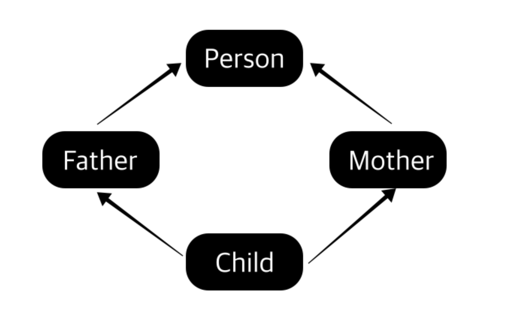 말 그대로 여러 개의 부모클래스를 상속할 수 없다. 지원하지 않는 이유는 바로 다이아몬드 문제 때문인데, 다이아몬드 문제란 아래와 같은 상황일 때를 의미한다.