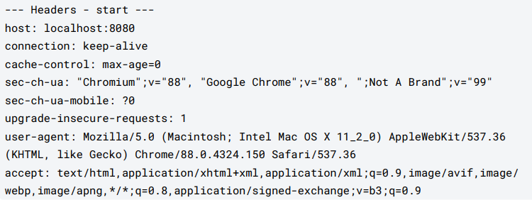 .forEachRemaining(headerName -> System.out.println(headerName + ": " + request.getHeader(headerName)));
