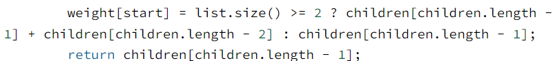 weight[start] = list.size() >= 2 ? children[children.length - 1] + children[children.length - 2] : children[children.length - 1];