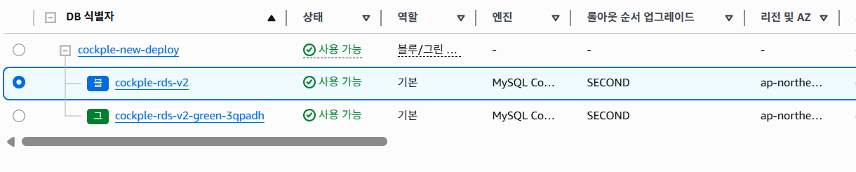 이때 green은 read-only로 aws에서 락을 걸기 때문에, 수정작업을 할 수 없다!