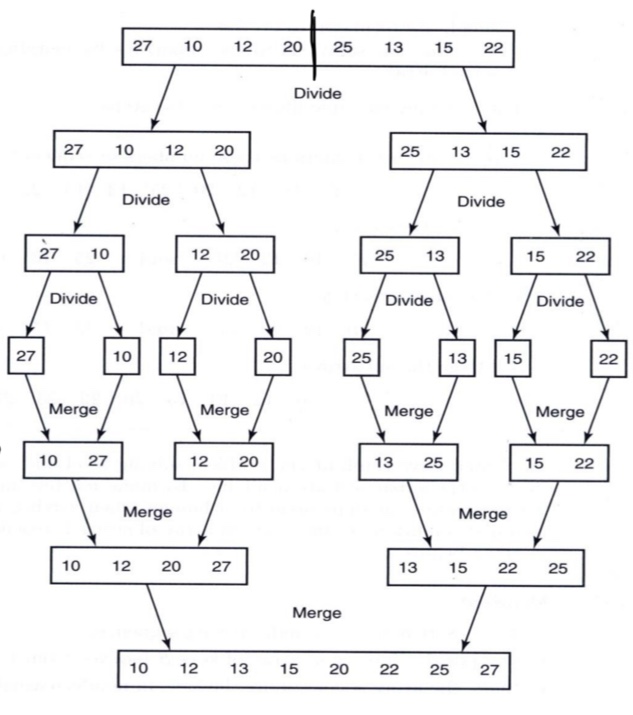 divide를 거치면서 매 과정을 stack에 저장해두었다가, merge를 거치며 꺼내어 병합한다.