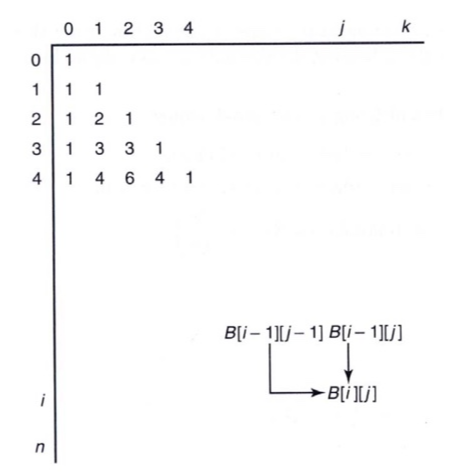 B[ i ][ j ] = if 0 < j < i, B[i -1][j -1] + B[i -1][ j ]