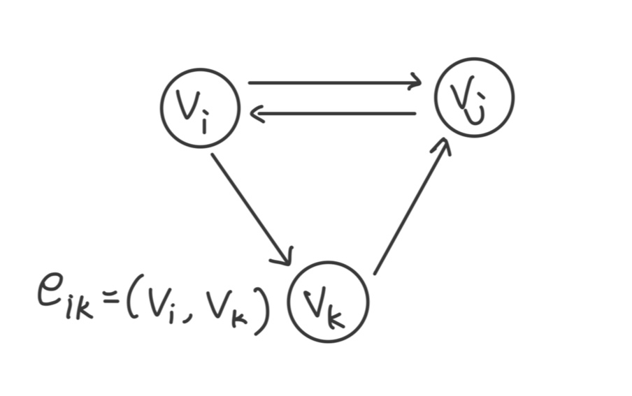 - 방향그래프 (directed graph) : 간선에 방향이 존재하는 경우, 예를 들면 위 그림처럼 vi에서 vj로 가는 간선과 vj에서 vi로 가는 간선이 따로 존재하는 경우, 이런 그래프를 방향그래프 (directed graph)라고 한다.